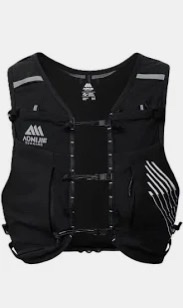 A unisex 10-litre hydration vest featuring a stretch-fit design, multiple secure storage pockets, hydration tube straps, and compartments for emergency gear and a bladder system.